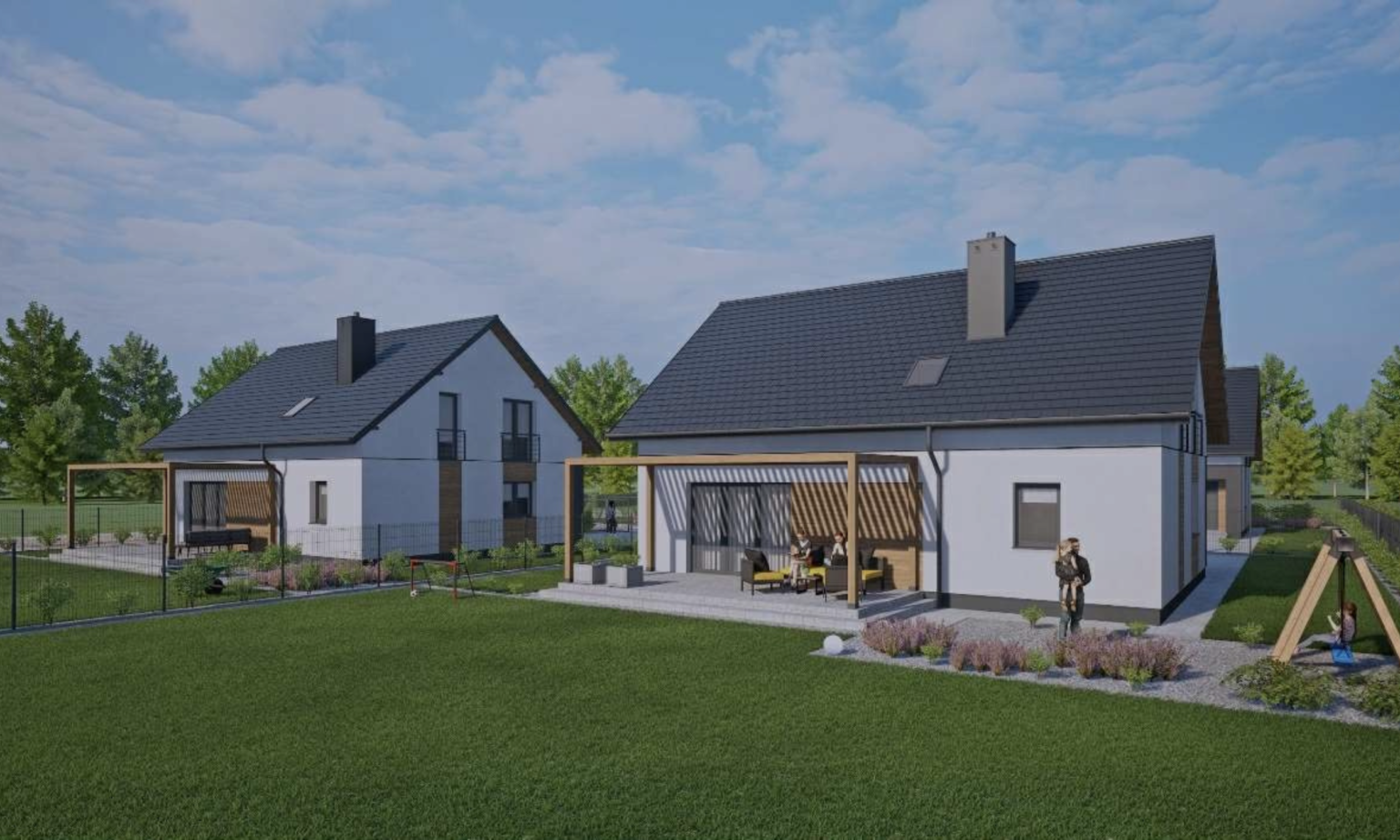 Nasze inwestycje powstają w otoczeniu natury – z dala od zgiełku miasta, a jednocześnie w dogodnym sąsiedztwie potrzebnej infrastruktury. Każdy dom to prywatny ogród, własne miejsce parkingowe i przestrzeń, w której możesz odetchnąć pełną piersią.