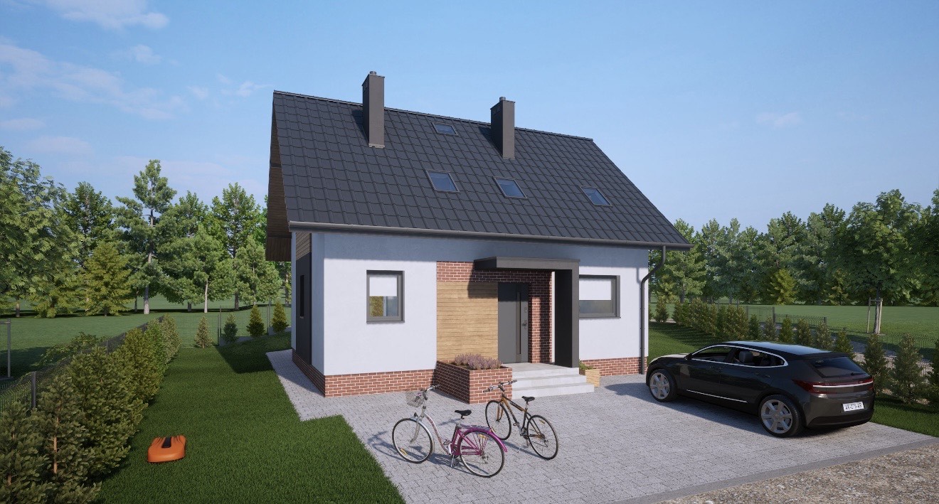 Dom budowany z bloczka polotherm i przykryty dachówką ceramiczna Erlus.